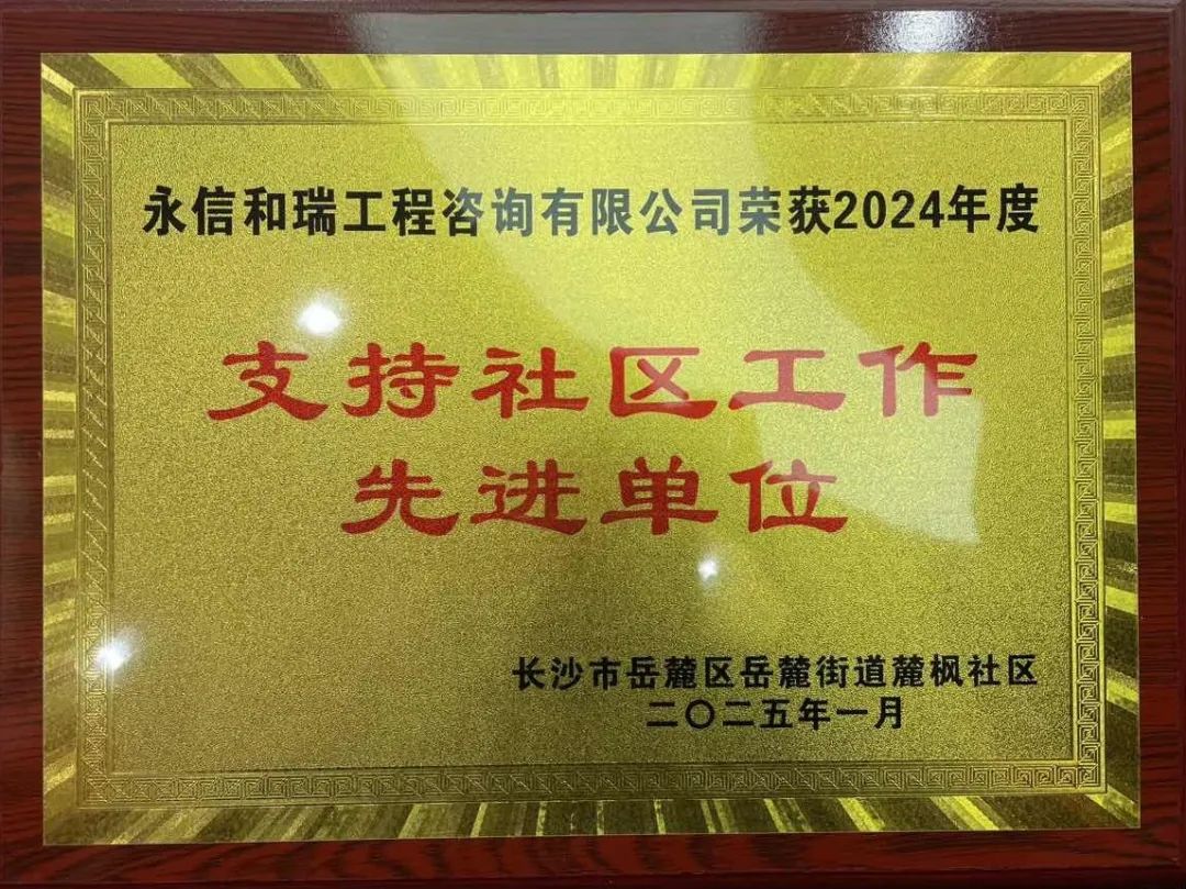 近日,岳麓街道麓楓社區(qū)2024年度先進(jìn)集體和優(yōu)秀個人評選結(jié)果揭曉,我司榮獲“支持社區(qū)工作先進(jìn)單位”榮譽(yù)稱號。