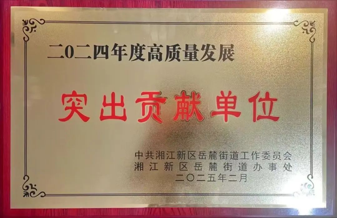 我司榮獲岳麓街道2024年度高質(zhì)量發(fā)展突出貢獻(xiàn)單位獎
