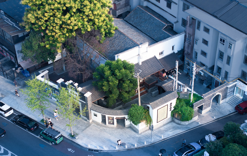 楊建覺:當決策者征詢?nèi)绾翁幹眠@堆磚瓦時,我提議留住一段悠長而即將消逝的歷史場景感也許是不錯的選擇,復(fù)建新樓的報批報建也是麻煩,當時心有萌動,念及讀初中時的記憶。我小時候住在大古道巷,時常去一位家住小古道巷的同學(xué)家玩。那是一棟老公館,院墻高高、木門厚實、石作講究,進門就是一方天井,接著是精致堂屋,八仙桌、太師椅……妥妥的大宅門感覺。我的設(shè)計從盡量留住西側(cè)老青磚墻開始,直覺告訴自己正在做一個舞美設(shè)計,用寫意方式呈現(xiàn)記憶中的清末民初長沙大宅門。朋友評價說:這是后現(xiàn)代手法,重拾歷史碎片,兼具戲劇化、場景化、情感化特征,功能就是圍繞體驗、拍照、懷古來進行。